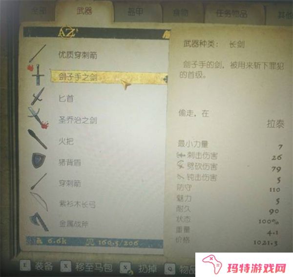 2、获取剑:刽子手之剑位于拉泰刽子手帐篷里的一个箱子中。你需要悄悄地从箱子里取出这把剑,并磨坏它后再放回去。虽然这把剑可以作为任务物品装备,但它首先需要通过任务完成后才能长期使用。