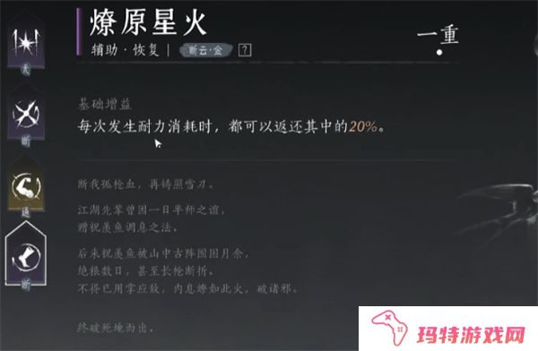心法效果:增强无名枪法的耐力消耗减免。