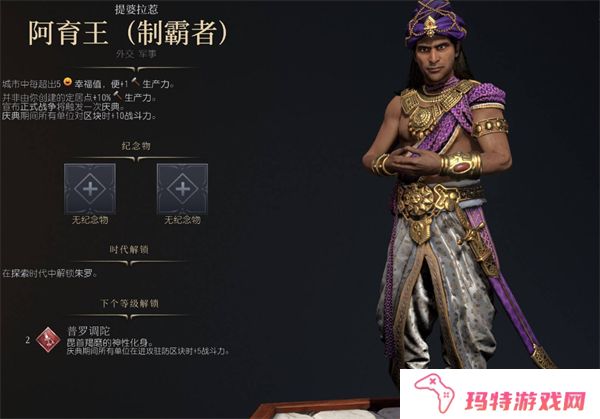 幸福值加生产力:阿育王的技能使得每当城市中幸福值超出5点时,便会增加**+1生产力**。这对于提高城市建设速度和资源积累非常有帮助。