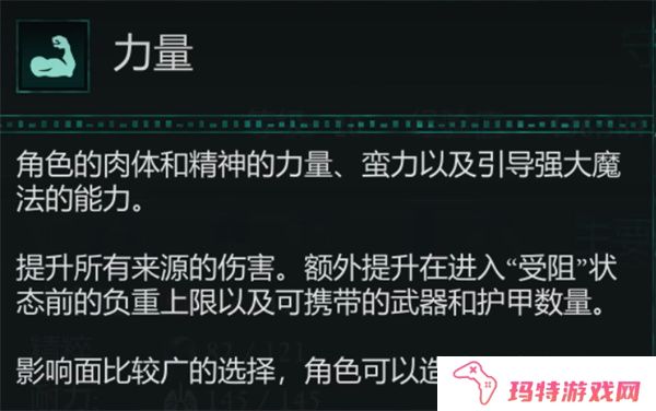 加点建议:强烈推荐将大部分属性点加在力量上。力量直接影响角色的伤害输出和负重能力,点数越高,伤害越大,能够让你在战斗中打出更高的伤害并承载更多装备。