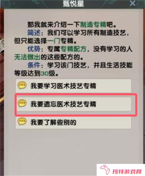 在接下来的界面中,选择我要遗忘XXX技术专精,然后确认选择遗忘。