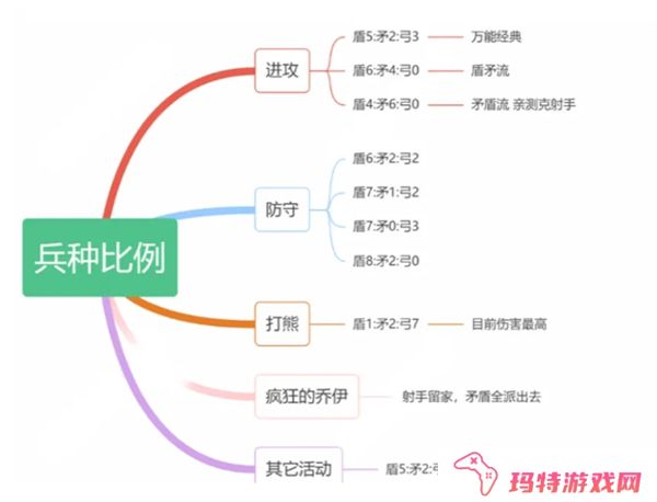 巨兽集结:在集结巨兽时,矛兵的损失相对较少,可以适当增加矛兵的比例来提高输出。