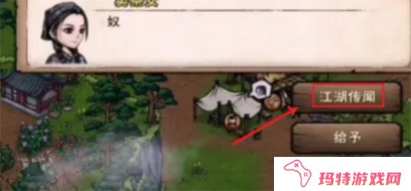 2️、在对话框中选择【江湖传闻】,继续与卖茶女交谈。
