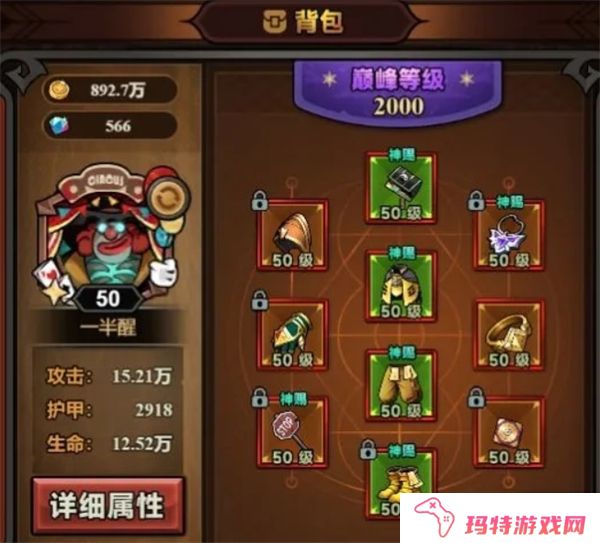 1、巅峰2000级魂灵师的装备与属性