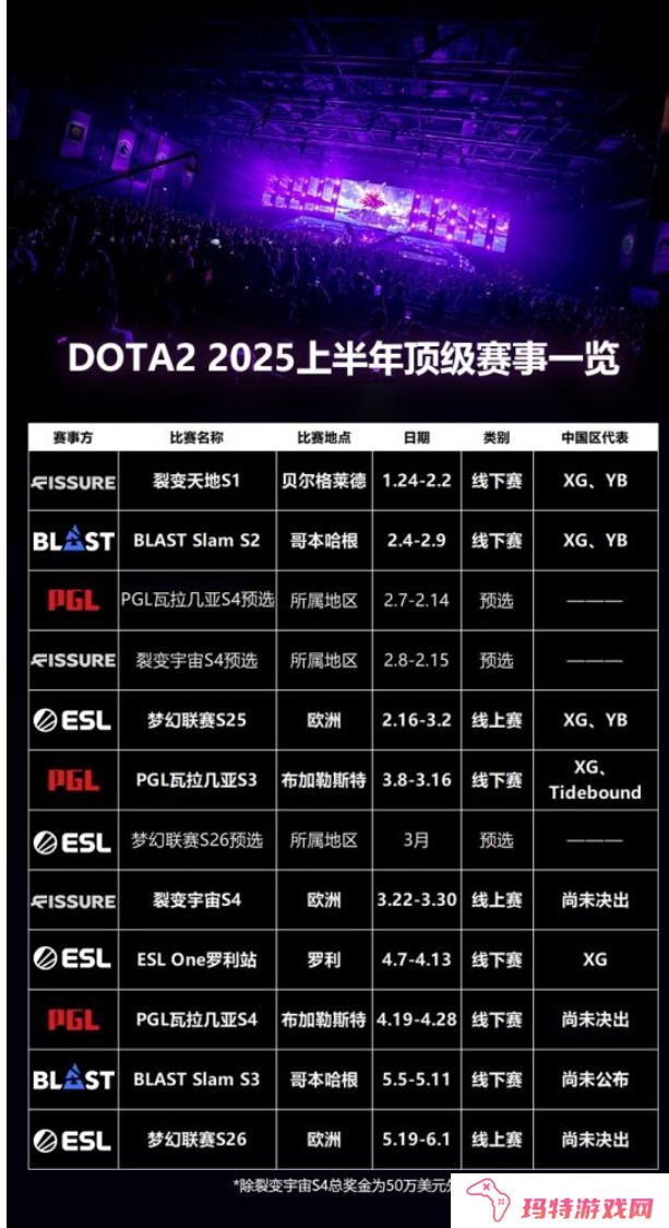 裂变天地S1和BLAST Slam S2已经落下帷幕,Tundra战队力夺两冠。而在此期间,又有新的赛事出炉,本赛季已经官宣的顶级赛事如下: