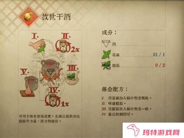 天国拯救2中的保存机制比较特别,玩家只有上床睡觉或者退出游戏的时候才能保存进度,如果想要手动保存的话需要一个名为救世干酒的保存药剂才能保存存档。但是救世干酒要怎么获得呢?其实可以通过制作来获得,这里小编为各位带来了天国拯救2保存药剂怎么制作的攻略,希望对你有帮助。
