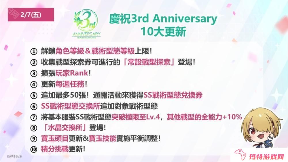 官方表示,将于 2 月 7 日 (五) 释出的 Ver.5.3.0 更新版本中,实施「庆祝 3rd Anniversary 的 10 大更新」,将解锁等级上限和追加常设战型探索等,实施各种改善和追加功能。