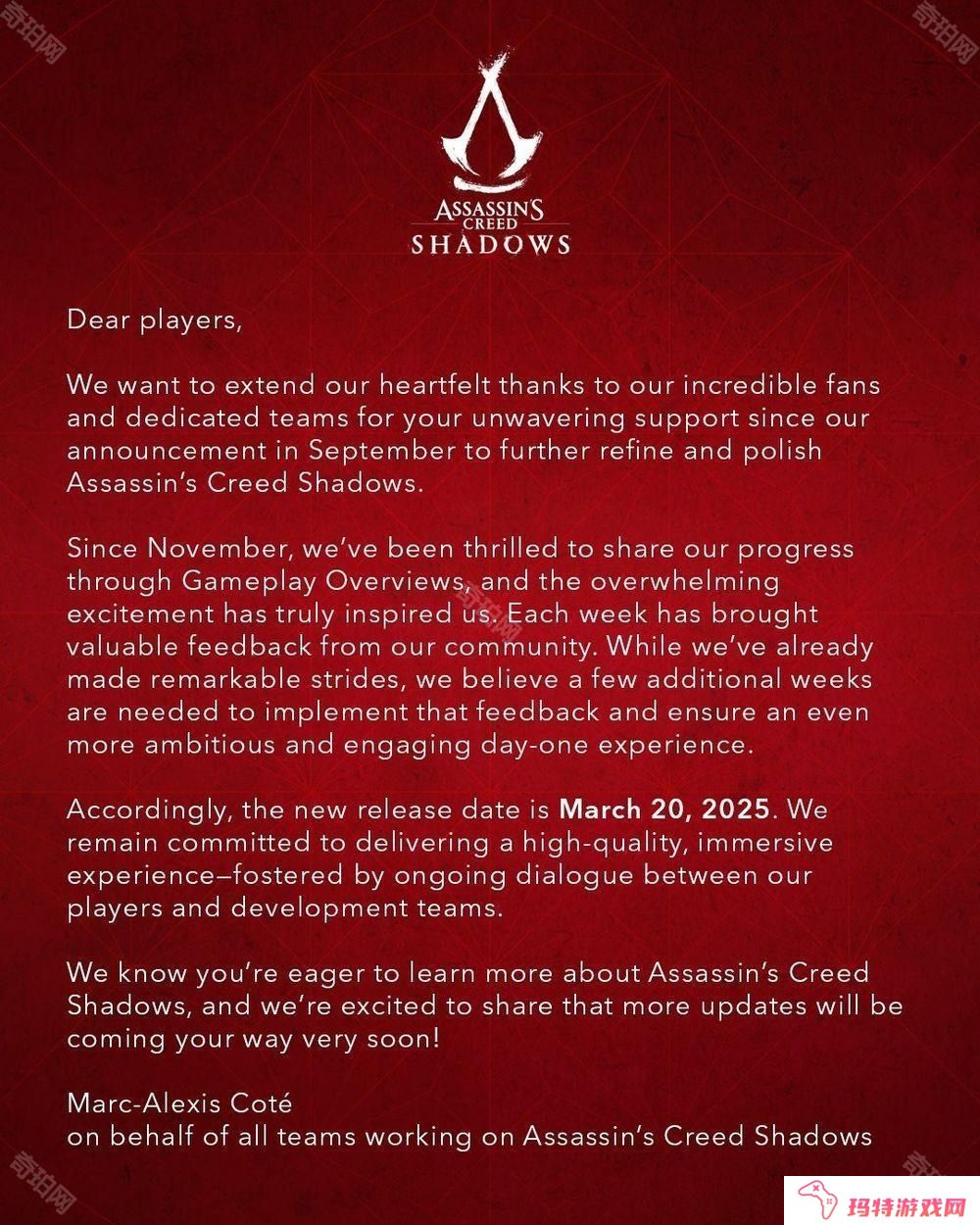 再度延期!《刺客信条:影》宣布将延至 3 月 20 日上市