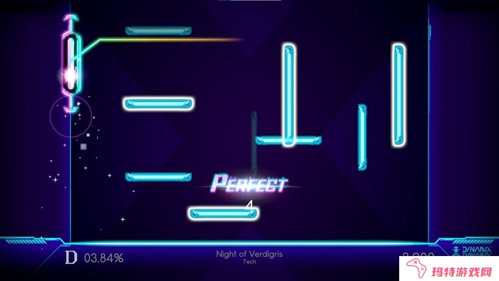 《Dynamix Universe》延续了原作的创新玩法,采用独特的三面落下式设计。玩家在游戏中需在左、中、右三个区域点击音符,每个区域各自代表不同乐器的音轨,提供更为沉浸和具挑战性的节奏游戏体验。这款新作改良了《Dynamix》的系统,并加入同时标记和新音符。