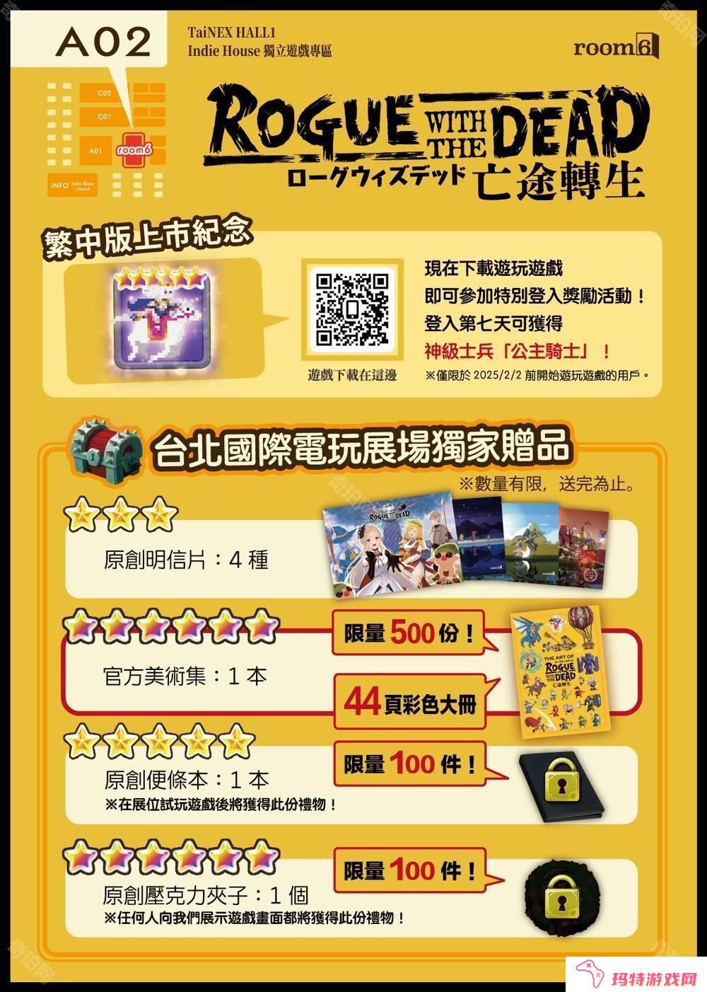 官方同时宣布,《Rogue with the Dead - 亡途转生》将参加于 2025 年 1 月 23 日至 26 日在台北南港展览馆举办的「2025 台北国际电玩展」。展会期间,玩家可在现场设有的试玩区体验游戏,同时还有独家限量周边等待大家收藏。此外,各式精彩活动将在展会中举行,诚邀玩家共襄盛举。