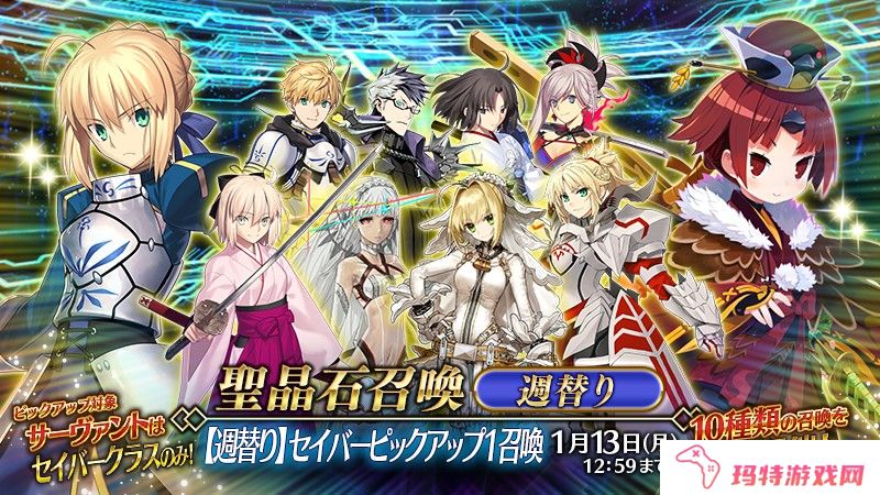 此外,自 1 月 6 日起举办截至 2024 年为止的所有 ★5 从者 Pick Up 召唤,以每週轮替&每名单独 ★5 角色搭配部分 ★3&★4 角色的方式实施,1 月份率先由 Saber、Archer、Ruler 职阶登场,