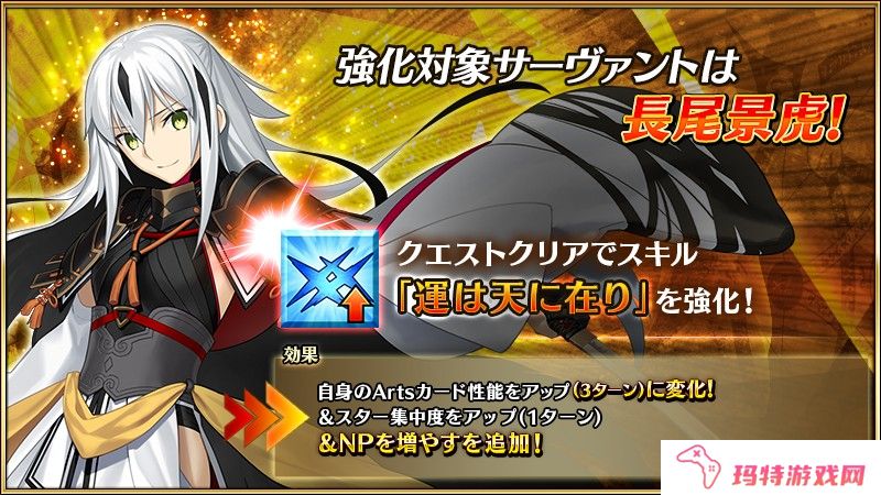 官方已于迦勒底之门中追加能强化「★4(SR)长尾景虎(Lancer)」的「从者强化关卡」。