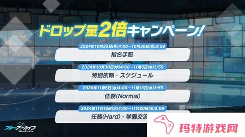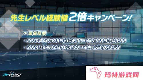 自日本时间 10 月 23 日(三)4:00 起,不同关卡的「掉落量 2 倍活动」以及「老师等级经验值 2 倍活动」将陆续开跑。