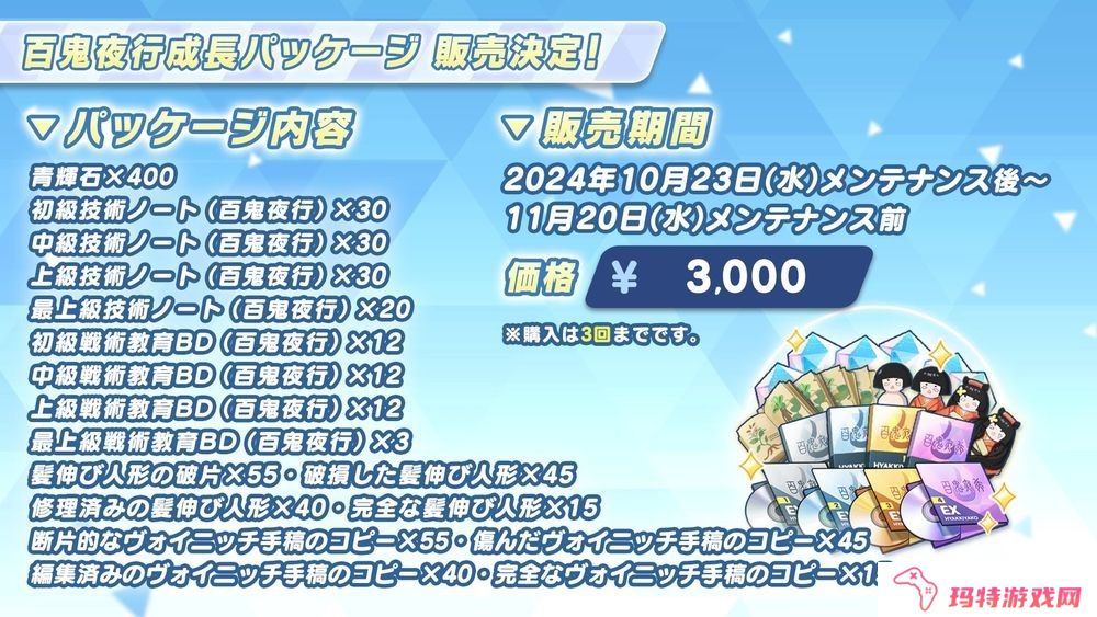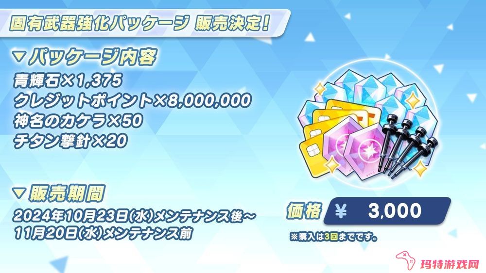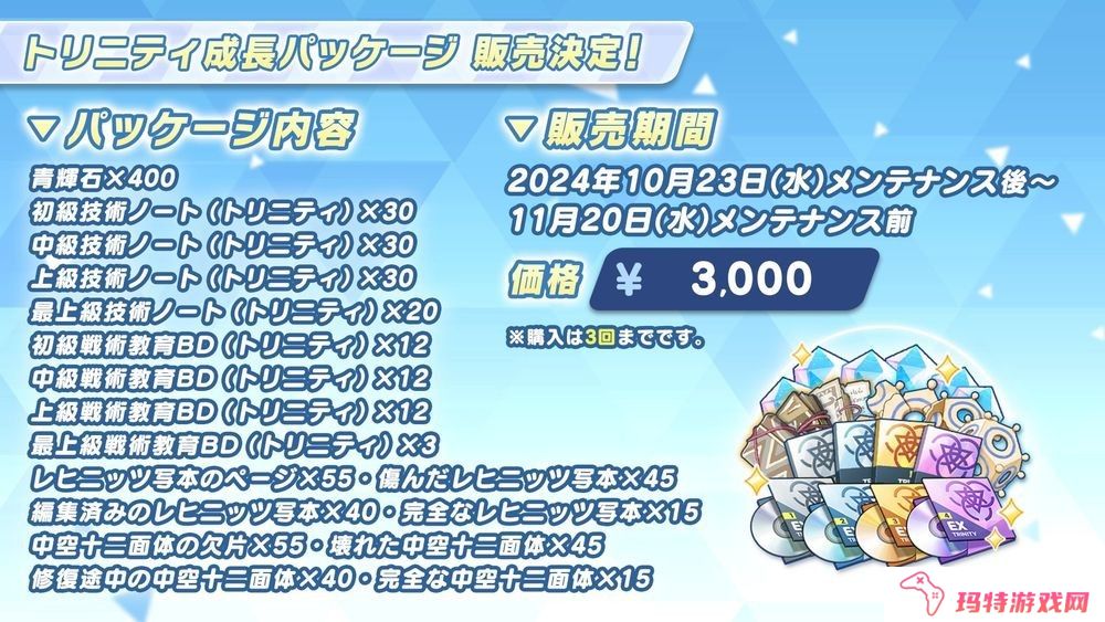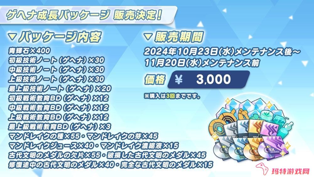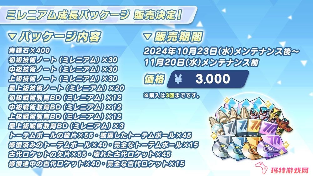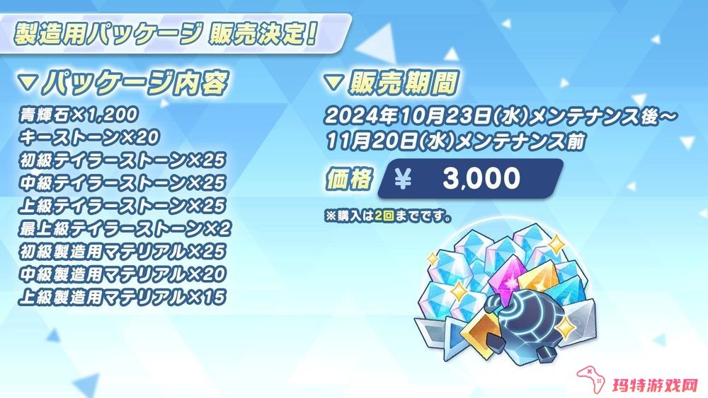 青辉石、技术笔记、装备设计图等素材綑绑销售的各种礼包将于 10 月 23 日维护结束后同时开始贩售。