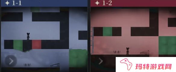 1、1-1:推开绿箱子后,站在蓝格子上方,切换右下角胶卷为蓝色,落入下层。