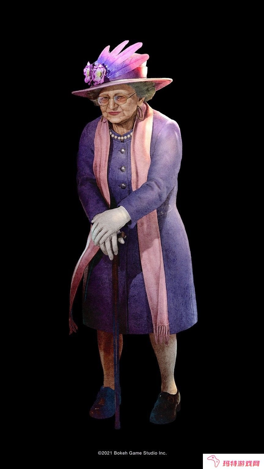 住在山上豪宅的富裕老妇人,因腿部受伤行动不便,随身携带已故丈夫留下的拐杖。她似乎总会出现在凭鬼的每个去处等待着,并留下神秘的话语。