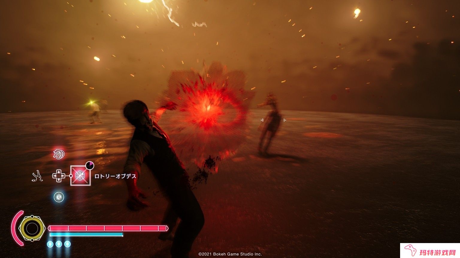 布雷克的共用技能。使用血之手枪攻击敌人。长按技能键可连射,每次射击威力会逐渐增加,但若运气不佳可能会走火伤及自己。
