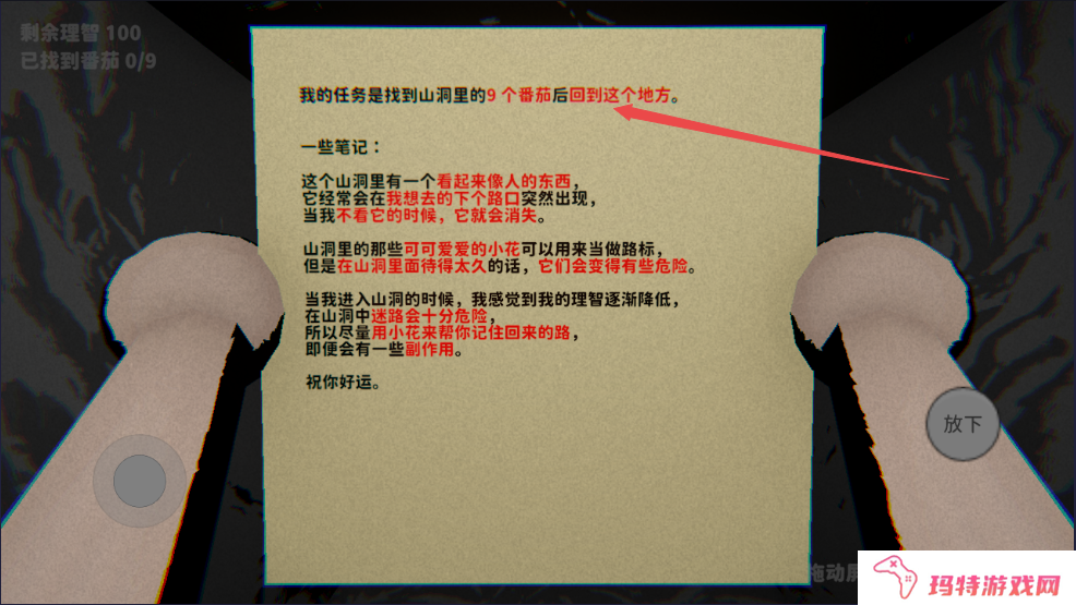 可可怕怕山洞探险内容:1、在进行游戏后,玩家可以看到画面的左上角将会显示你的目标,还有角色的状态;
