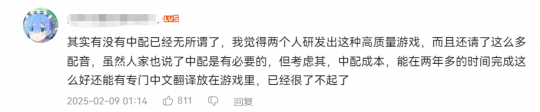 好在,当下其实有不少国内玩家对现状非常满意,认为日语配音就很好了。毕竟游戏本身的风格就更接近日式二次元游戏,能提供中文文本大家就已经很满意了。